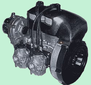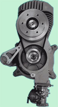 two cylinder, two-cycle air-cooled engine, a union of modern materials